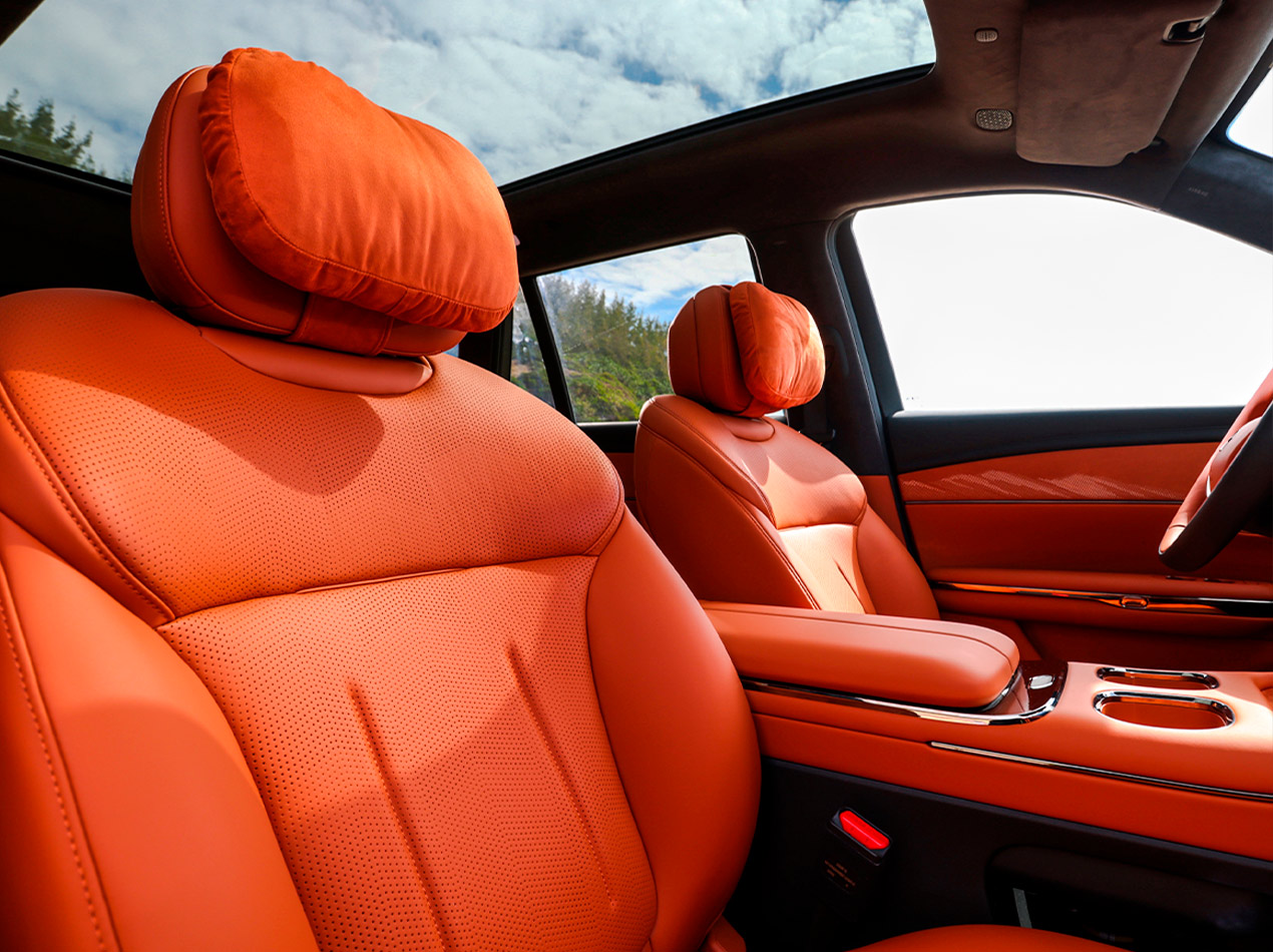 Отделка салона выполнена из материалов премиум-класса: кожи Nappa и искусственной замши — качество, которое можно ощутить.